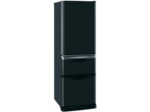 රූපය 1: ඉදිරිපස view of the Mitsubishi Electric MR-C37T-B Refrigerator. This model features a platinum black finish with a right-opening door configuration and three distinct compartments.